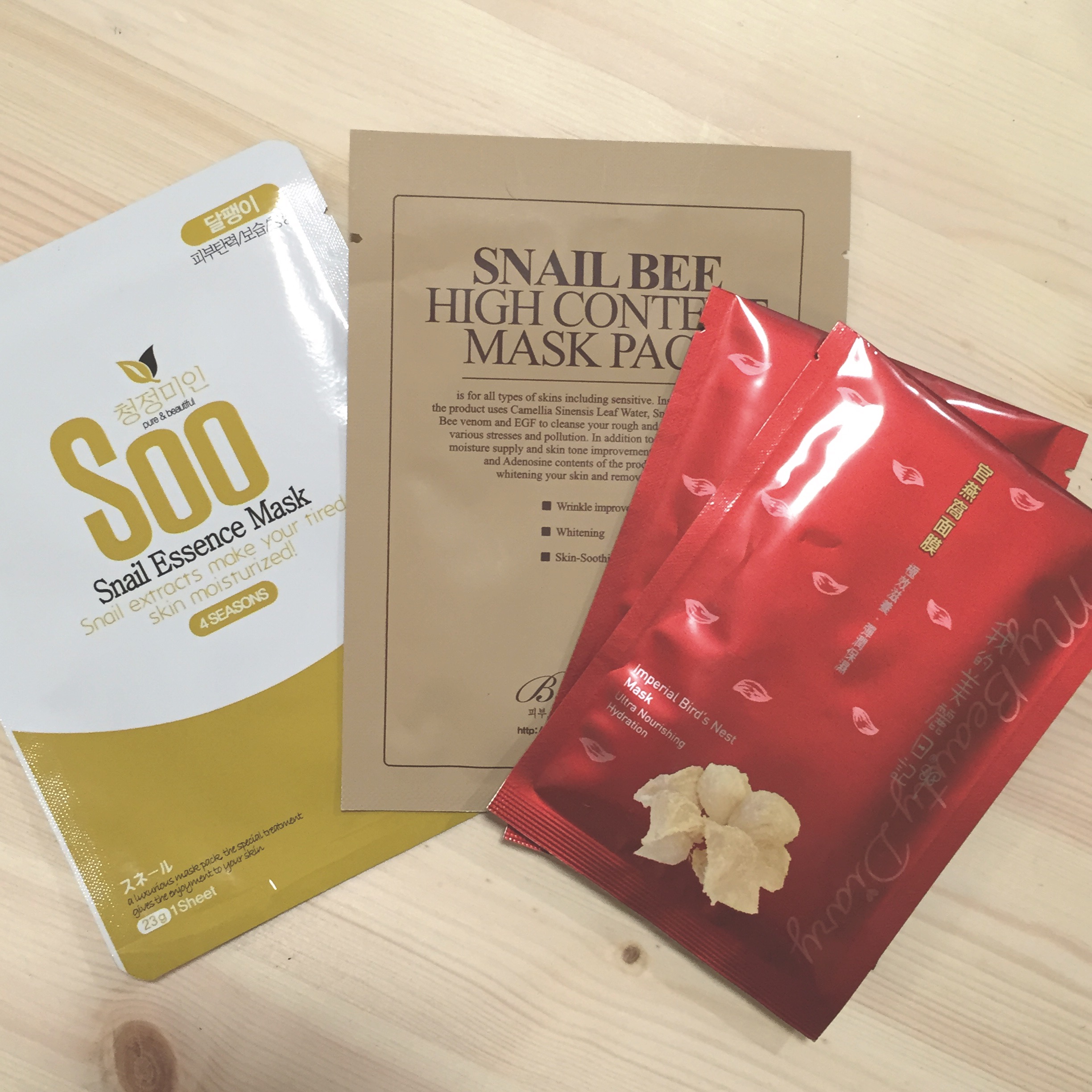 Benton Snail Bee High Content Mask Pack $15 for 10pcs; or My Beauty Diary Imperial Bird’s Nest Mask $14 for 10pcs